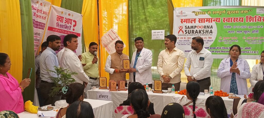 झाँसी। नाकों भारत सरकार के निर्देशन पर और उत्तर प्रदेश राज्य एड्स नियंत्रण सोसायटी की सुपरविजन में संपूर्ण सुरक्षा केंद्र द्वारा एचआईवी/एड्स जागरूकता को लेकर लाल स्कूल में शिविर का आयोजन किया गया। डॉ. पी० के० कटियार प्रमुख मंडलीय अधीक्षक और डॉ० सुधाकर पाण्डेय मुख्य चिकित्साधिकारी एवं डॉ० यू० एन० सिंह जिला क्षय रोग अधिकारी के मार्गदर्शन में डॉ० एस० के० गुप्ता संपूर्ण सुरक्षा नोडल अधिकारी एवं दिशा क्लस्टर की पहल पर पूर्व नियोजित योजना के तहत एक सामान्य स्माल स्वास्थ्य शिविर का आयोजन लाल स्कूल नई बस्ती थापक बाग़ झाँसी में किया गया। सर्वप्रथम शिविर का उद्घाटन सदर विधायक रवि शर्मा के पुत्र परन प्रताप शर्मा, प्रवीण लखेरा पार्षद, जिला क्षयरोग अधिकारी डॉ० यू० एन० सिंह, डॉ० एस०के० गुप्ता संयुक्त तत्वाधान में फीता काटकर किया गया। इसके बाद उपस्थित सभी अतिथियों का बुके देकर सभी का स्वागत किया गया।