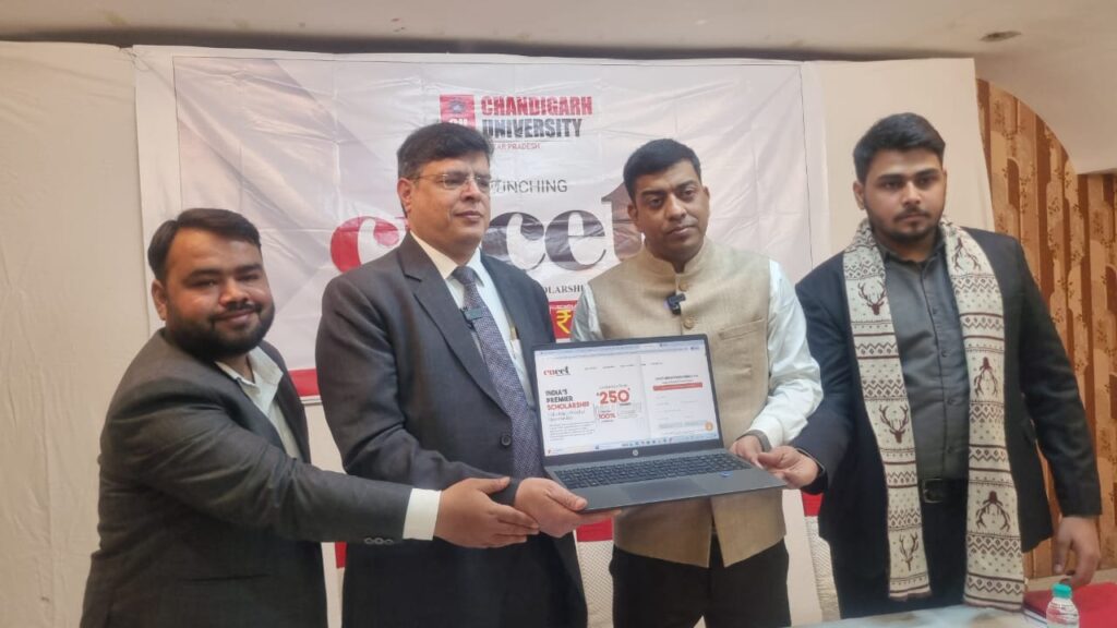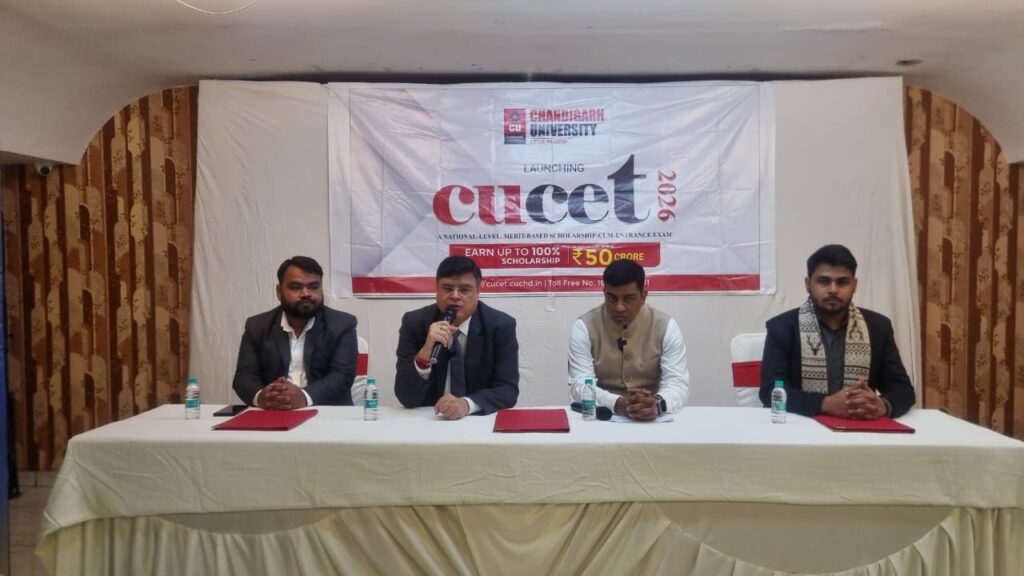सीयूसीईटी 2026’ पोर्टल लॉन्च, छात्रों को मिलेगा नया अवसर- इस कार्यक्रम में डॉ. शुभेंदु चक्रवर्ती (असिस्टेंट डीन – रिसर्च एंड डेवलपमेंट) एवं एसोसिएट प्रोफेसर ने ‘सीयूसीईटी 2026’ पोर्टल लॉन्च करते हुए बताया कि चंडीगढ़ यूनिवर्सिटी उत्तर प्रदेश में प्रवेश CUCET (कॉमन यूनिवर्सिटी एंट्रेंस टेस्ट) में प्राप्त अंकों के आधार पर दिया जाता है।उन्होंने कहा कि इच्छुक विद्यार्थी ऑनलाइन आवेदन के लिए विश्वविद्यालय की आधिकारिक वेबसाइट के माध्यम से आवेदन कर सकते हैं। साथ ही अधिक जानकारी के लिए टोल फ्री नंबर 18002701411 पर संपर्क किया जा सकता है।डॉ. शुभेंदु चक्रवर्ती ने कहा कि ‘सीयूसीईटी’ का उद्देश्य हजारों विद्यार्थियों के शैक्षणिक सपनों को साकार करना, आर्थिक बाधाओं को कम करना और नई पीढ़ी को रोजगार, एआई और उन्नत कौशल विकास के बेहतर अवसर प्रदान करना है।