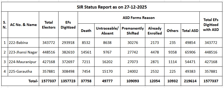झाँसी। अपर जिला मजिस्ट्रेट (प्रशा०)/उप जिला निर्वाचन अधिकारी शिव प्रताप शुक्ल ने सर्व साधारण को सूचित किया है कि भारत…