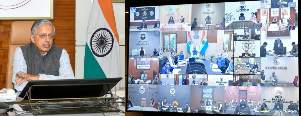 झाँसी। मुख्य सचिव एस.पी. गोयल ने वीडियो कॉन्फ्रेन्सिंग के माध्यम से सभी मण्डलायुक्तों एवं जिलाधिकारियों के साथ उत्तर प्रदेश लोक सेवा आयोग द्वारा आयोजित सहायक अध्यापक (प्रशिक्षित स्नातक) (पुरुष/महिला शाखा) (प्रा0) परीक्षा-2025 की तैयारियों की विस्तृत समीक्षा की।मुख्य सचिव ने स्पष्ट निर्देश दिए कि यह परीक्षा पूरी तरह से निष्पक्ष, नकलविहीन तथा पारदर्शी तरीके से सम्पन्न करायी जाए। परीक्षा प्रक्रिया में किसी भी प्रकार की शिथिलता बर्दाश्त नहीं की जाएगी। जिलाधिकारी स्वयं व्यक्तिगत निगरानी करते हुए सभी परीक्षा केंद्रों पर आयोग के मानकों के अनुरूप व्यवस्थाएं सुनिश्चित कराएं। नकल पर पूर्ण अंकुश लगाने के लिए सभी परीक्षा केन्द्रों पर प्रवेश के समय बायोमेट्रिक सत्यापन एवं फ्रिस्किंग की प्रक्रिया अत्यंत कड़ाई से लागू की जाए तथा समयबद्धता का पूर्ण रूप से पालन हो। परीक्षा से संबंधित सभी अधिकारियों एवं कर्मचारियों की ड्यूटी एवं प्रशिक्षण समय से पूर्ण कर लिया जाए।